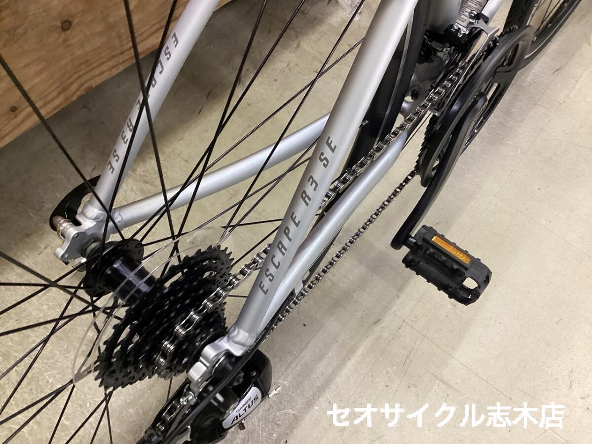 ベースは2025年モデルのエスケープR3。カラーがマットシルバーかつロゴが光を反射する加工を施しております。