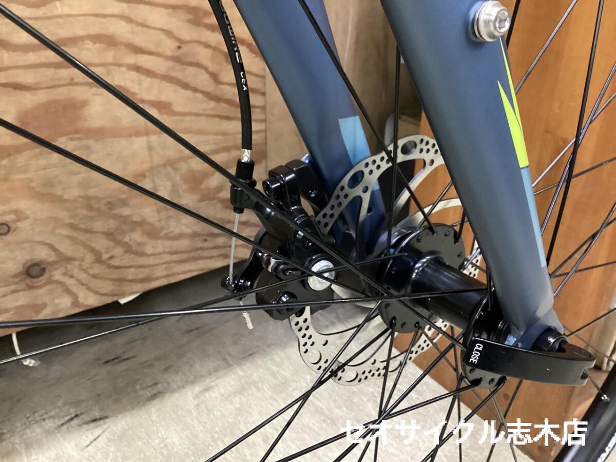 軽いアルミフレームに機械式ディスクブレーキを組み合わせたクロスバイク。