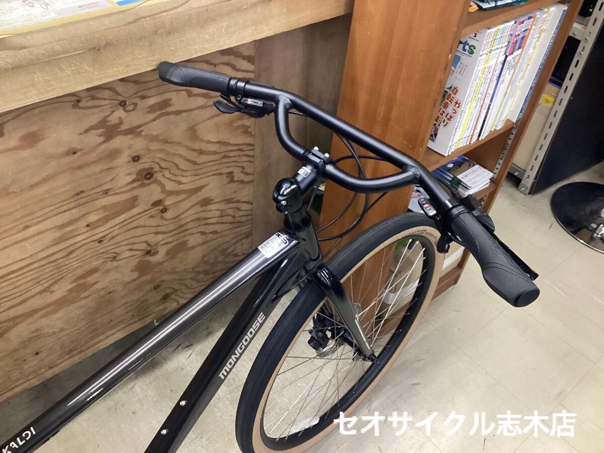 一番の特徴はハンドルですね。バーが増設されているのでライトやスマホホルダーがとっても取付やすい形になっています。