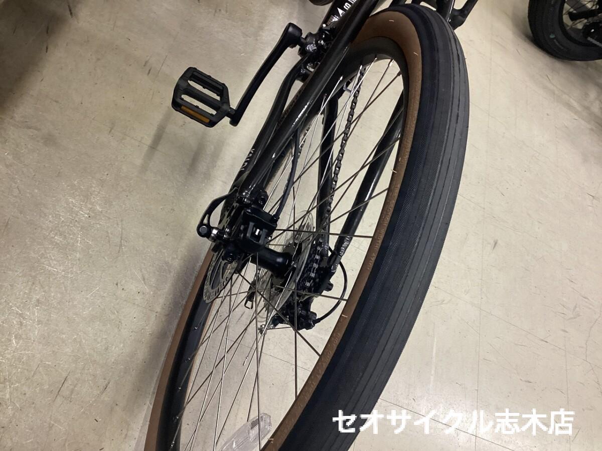 クロスバイクによくある700C規格のタイヤではなく、マウンテンバイク規格の27.5インチタイヤを採用しています。